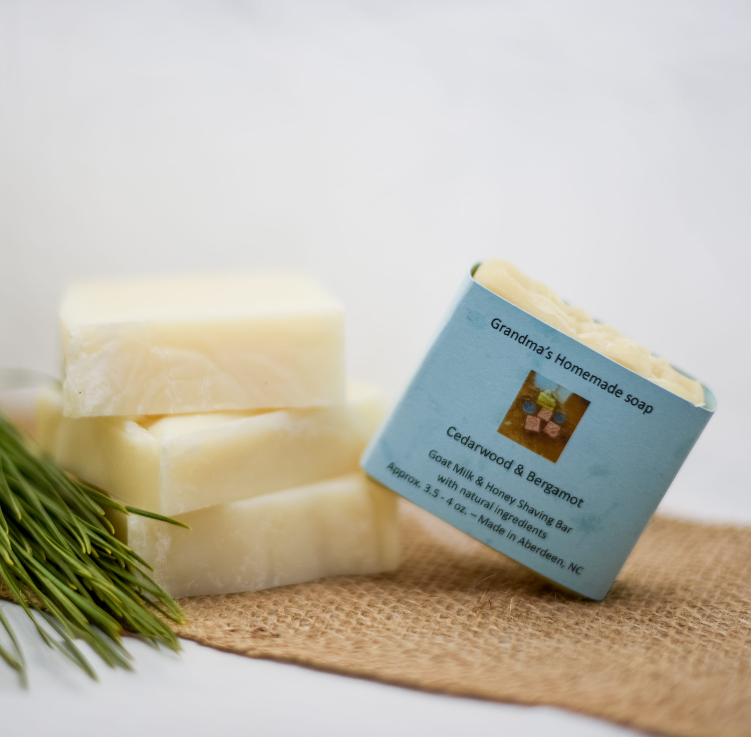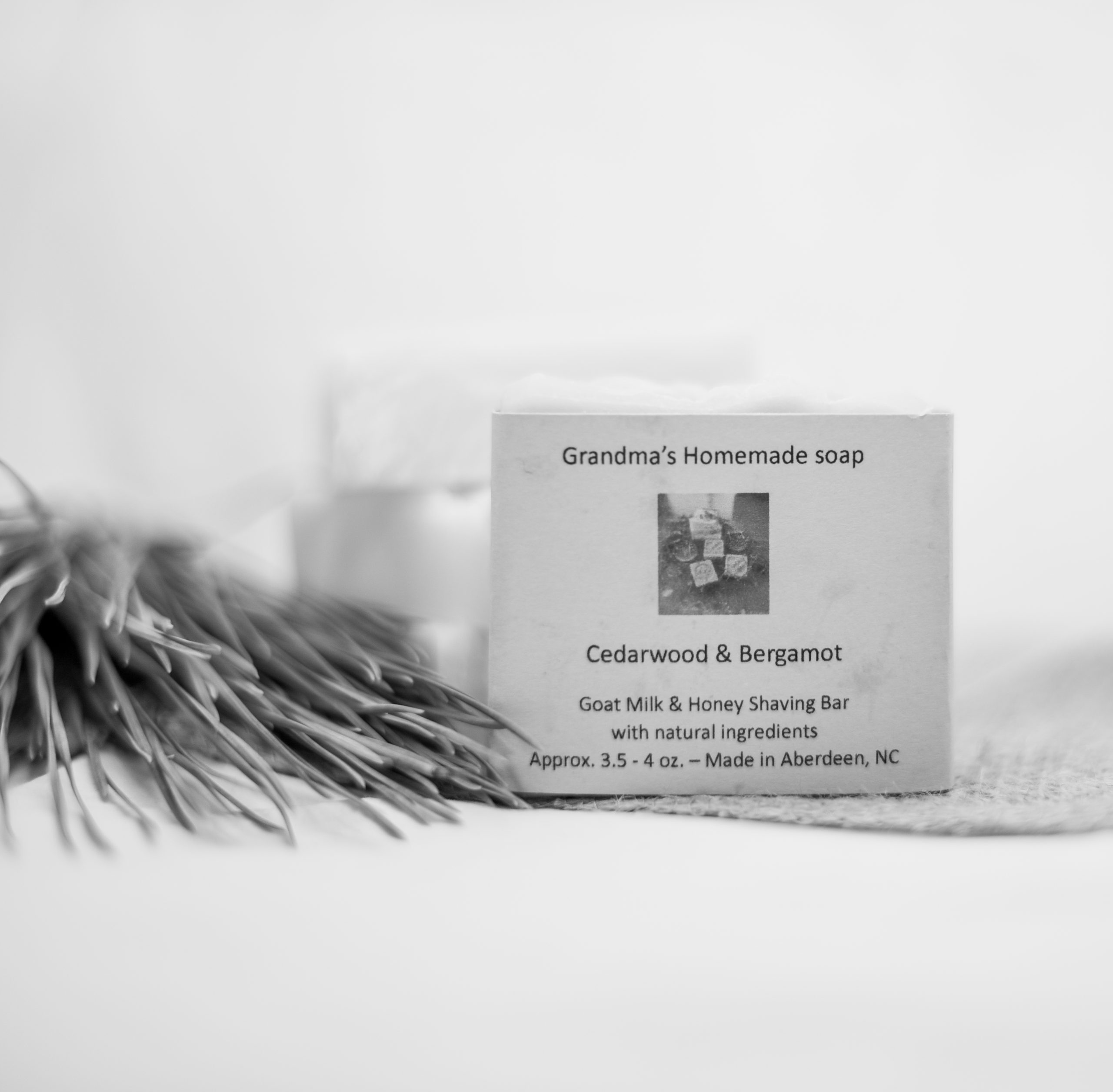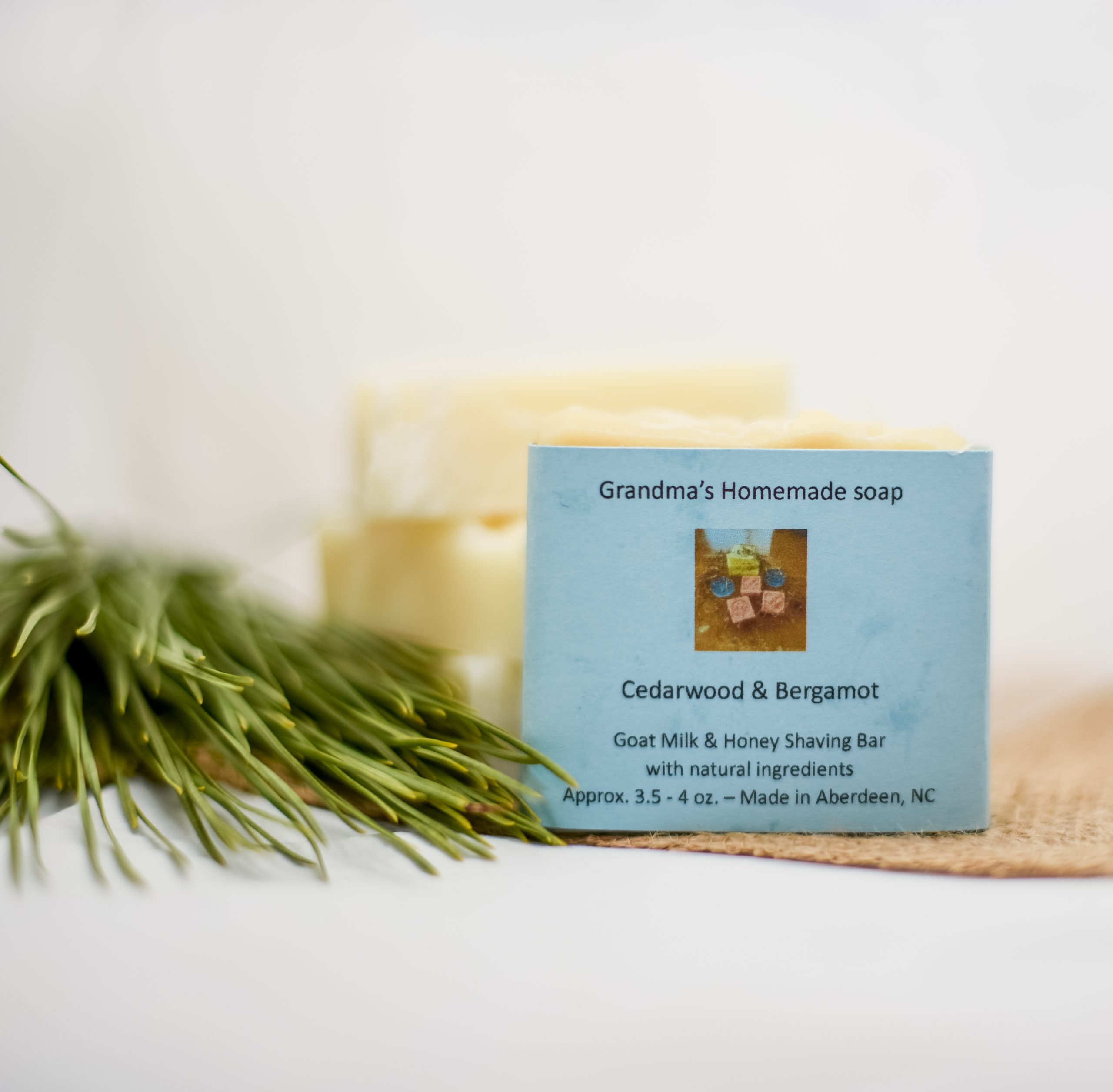 | Ingredients | babassu oil, bergamot essential oil, castor oil, cedarwood essential oil, cocoa butter, filtered water, goat milk, lye, olive oil, raw honey, shea butter |
