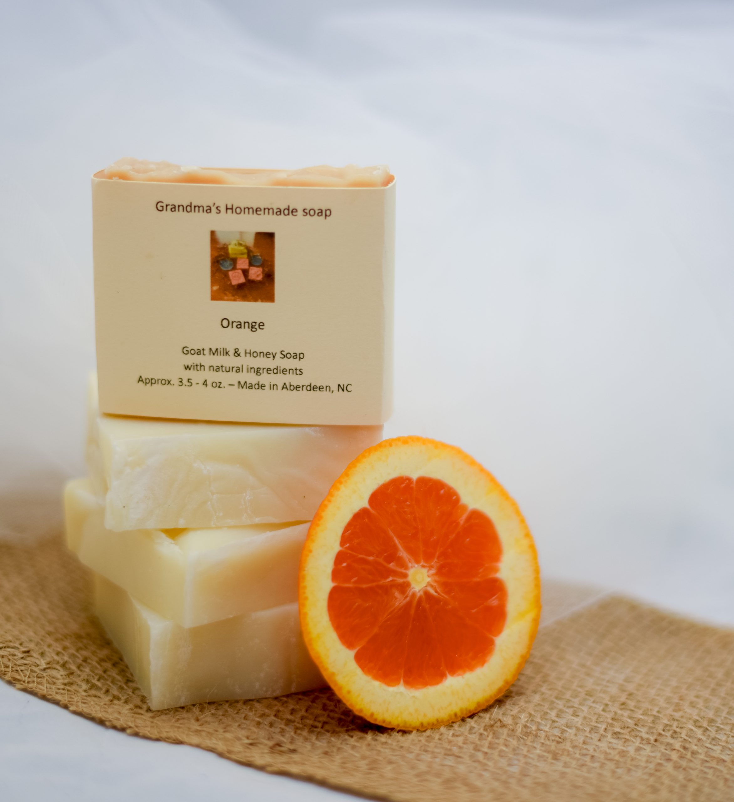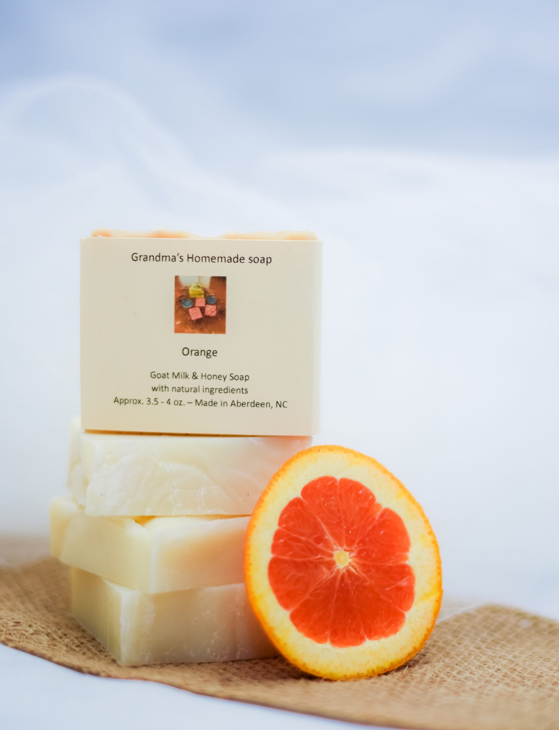 | Ingredients | beeswax, coconut oil, filtered water, goat milk, lard, lye, olive oil, orange essential oil, raw honey, sweet almound oil |